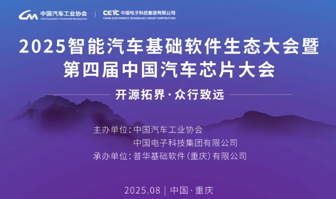 为促进产业协同创新、突破发展瓶颈、为全球贡献智能汽车生态“中国方案”。由中国汽车工业协会、中国电子科技集团有限公司主办,普华基础软件(重庆)有限公司承办的2025智能汽车基础软件生态大会暨第四届中国汽车芯片大会定于2025年8月26日至27日在重庆召开。