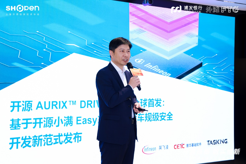 1月13日,以“开源筑基、数实维新”为主题的第二届开源产业生态大会在上海顺利召开。会上,在上海市经济和信息化委员会总工程师裘薇、AUTOSAR组织中国代表荆喆的见证下,普华基础软件、英飞凌、TASKING全球首发基于开源安全车控操作系统小满EasyXMen的AURIX™ DRIVECORE开发套件。普华基础软件副总经理兼战略研究院院长张晓先、英飞凌科技副总裁仲小龙、TASKING中国区总经理宣晓鸣参加了发布仪式。